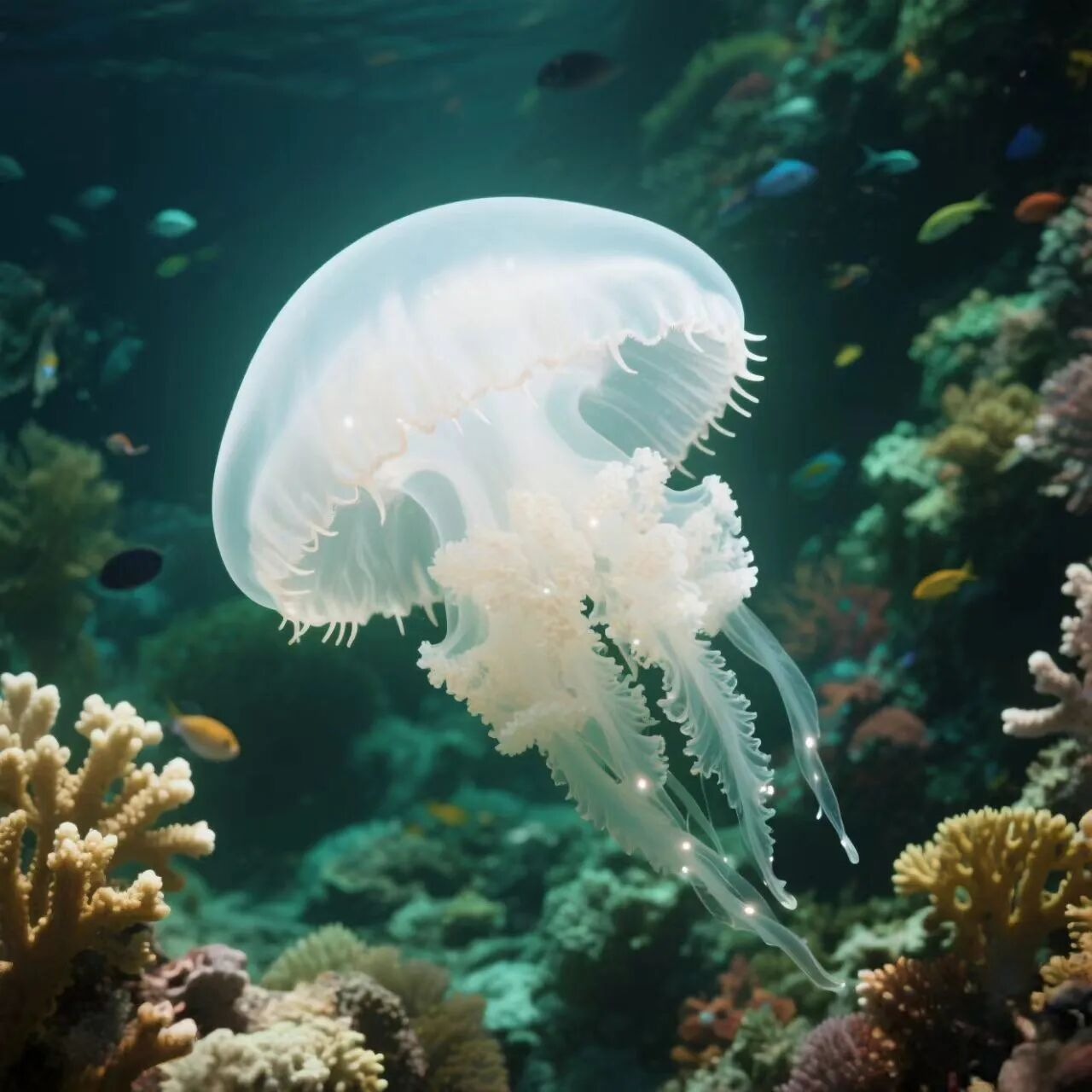 朵朵不会像小鱼那样摆尾巴游泳,每天都靠“伞面”一收一缩,像吹气球似的往前漂。有天,一群小虾慌慌张张游过,朵朵的触手轻轻一碰,小虾就不动了。小鱼乐乐好奇地问:“你在施魔法吗?”朵朵笑着晃“伞”:“我的触手上有小刺,能放出小电流,这样就能抓住美食啦!”