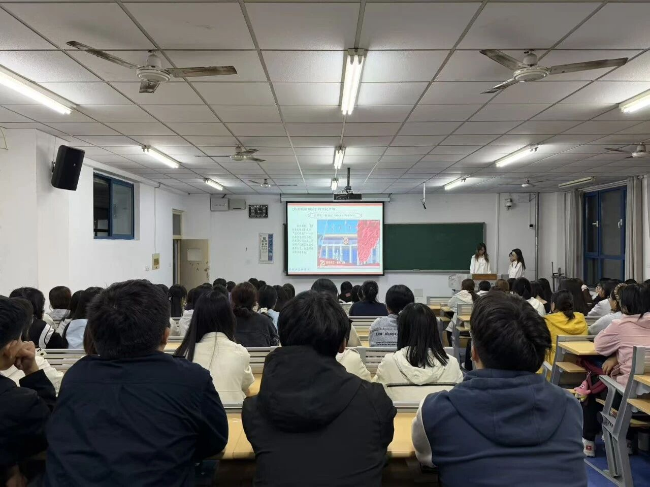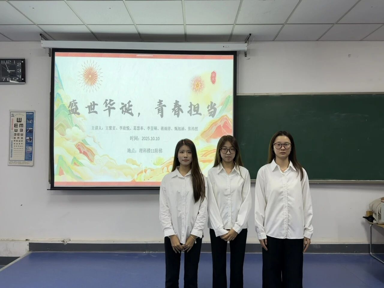 为激励学生坚定理想信念,树立正确的世界观、人生观和价值观,传承革命先烈的爱国主义精神、民族精神和集体主义精神,2025年10月10日晚七点,生命科学学院于鲲鹏教学楼第十一阶梯教室组织开展“盛世华诞,青春担当”主题团课。本次团课由2024级团支书王紫玄、葛慧奉和蒋雨洋主持,2025级生物科学一班、生物科学三班和生物技术一班全体学生参加。