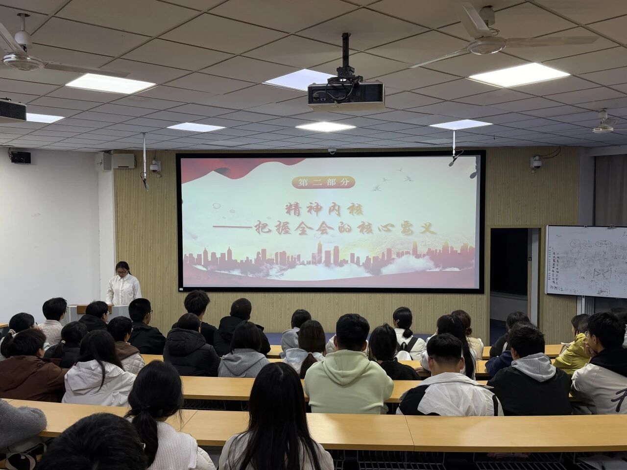 本次系列主题团课的开展,帮助学生从时代坐标与战略部署中汲取奋进力量,深刻认识高质量发展与科技自立自强,深化改革突破的时代意义,唤醒青年的责任感与使命感。今后,我院将持续开展此类主题教育活动,激励广大青年学子在科技创新中勇攀高峰、在服务民生中扎根奉献,以实际行动践行全会精神,将个人奋斗融入国家发展大局,为谱写民族复兴的盛世华章贡献青春力量。