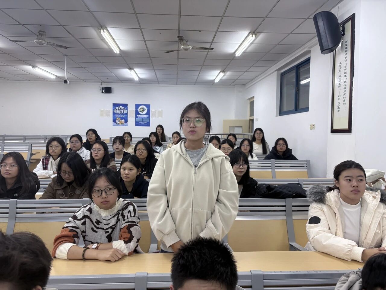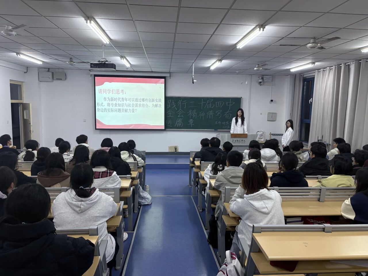 团课过程中,主讲人与同学们积极互动,向同学们提出了“作为新时代青年可以通过哪些创新实践形式,将专业知识与社会需求相结合,为解决身边的实际问题贡献力量?”的问题。同学们认真思考,积极回答,现场氛围十分活跃。最后主讲人呼吁大家以党的二十届四中全会精神为指引,将个人奋斗融入大局,用实干书写青春答卷。