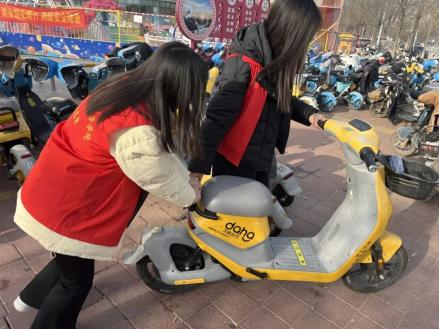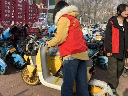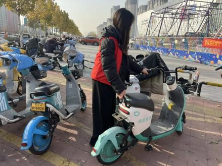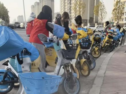 生命科学学院组织开展“停放有度,文明先界”共享单车规范停放宣传活动