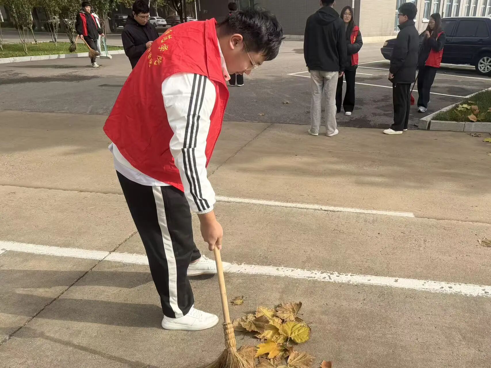 活动伊始,每一位志愿者都准时到达4号楼侧门集合,负责人讲解本次活动的注意事项,并分工,随后分别打扫了4号楼,5号楼前面的落叶,还有白色垃圾以及自行车的摆放。本次活动过程中志愿小队的成员细心工作,认真清扫,打扫完宿舍楼前面的落叶之后,就到爱心广场集合,再次分工打扫一餐厅那边的负责区域。在本次活动中,每一位志愿小队成员都认真工作,细心打扫,最终在大家的不懈努力下,校园里的环境变得更加舒适干净。深刻体现出志愿学子乐于奉献,积极向上的精神风貌。