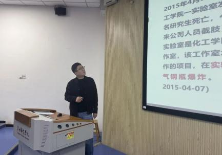 首先,高鹏岩老师向同学们介绍了实验室中心的构成,他聚焦实验室安全核心内容,分为“实验室安全因素”“化学品的危害”“实验室其他常见危害”三大板块展开讲解。其中,实验室安全由水、电、高压钢瓶气体及设备、高频和带有辐射源的仪器、化学试剂等多维度要素构成,每一项都关乎实验安全的基础防线。